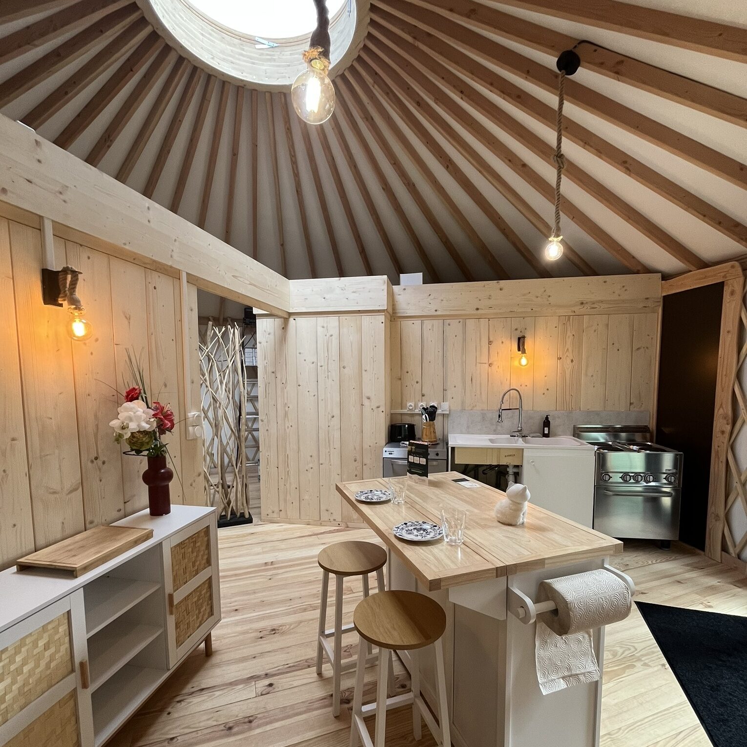 • Une cuisine équipée adjacente à la grande Yourte du Club des 5
